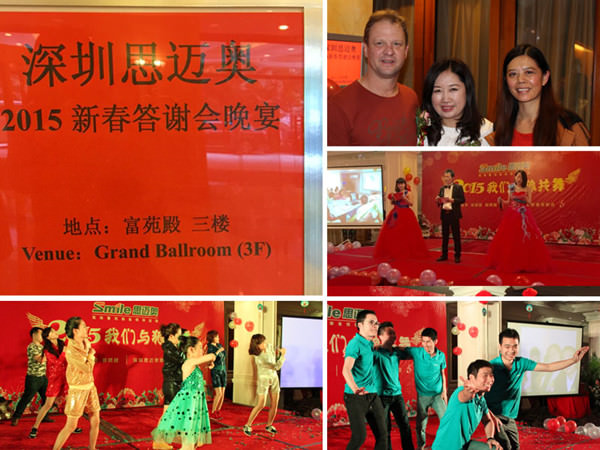 新浪記者李欣:思邁奧這次年會于往屆和其他同類年會相比,無論是在參加答謝會的人數,還是節目數量,還是節目品質,都有所提升。此次年會參加年會的人數達到 一百五十多人,節目也豐富精彩。據悉,本屆年會的節目有十五個,鐘經理總導。思邁奧人員自編自排,節目既有:歡快《歡樂中國年》、流行的舞蹈《小蘋果》、 搞笑的小品《免費電話》《相親》、滑稽的雙簧《打電話》、青春的舞蹈《倍兒爽 》、激情的舞蹈《抓錢舞》、更有動聽的歌聲《突然的自我》《紅日》《far away from home》《紅塵情歌》《恭喜發財》《飄揚過海來看你》、爵士健美操《跟我動起來》、全體員工《T臺秀》、手語《感恩的心》等節目。此次皇冠酒店高人氣年會,思邁奧回答了觀眾提問的幾個問題,為什么選擇iphone6 plus作為公司的一等獎,iphone6 作為公司的二等獎。思邁奧解釋道。因思邁奧是蘋果供應鏈生產廠家的安檢產品指定供應商,為了感謝客戶,所以我們選擇蘋果手機作為我們公司的獎品。