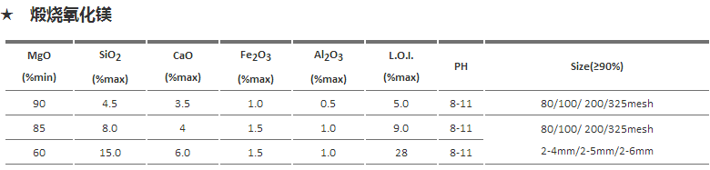 ● 工業(yè)級(jí)產(chǎn)品 氧化鎂類產(chǎn)品廣泛應(yīng)用于化工、造紙、冶金、環(huán)保等多種行業(yè)。我集團(tuán)生產(chǎn)的氧化鎂類產(chǎn)品具有質(zhì)量穩(wěn)定、活性好、純度高、種類齊全的優(yōu)點(diǎn)。