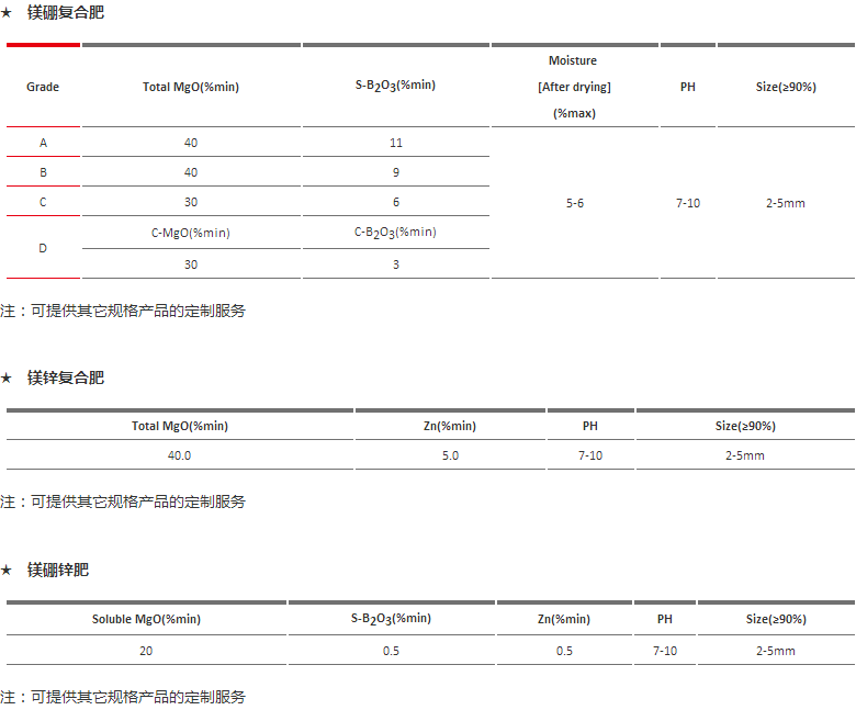 其它含鎂中、微量元素肥料